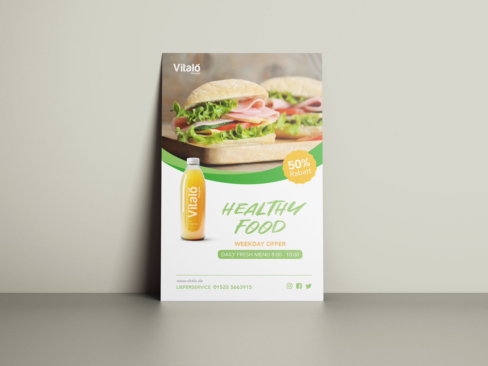 Das Design sollte die Frische der Smoothies, Säfte und Paninis widerspiegeln und gleichzeitig die Leichtigkeit und Lebendigkeit des Konzepts transportieren. Durch die Kombination von klaren, modernen Formen und einer Farbpalette, die Frische und Vitalität symbolisiert, entstand ein Logo, das die Identität des Vitalo Bistros authentisch und einladend zum Ausdruck bringt. Die Wortmarke wurde so gestaltet, dass sie Dynamik und Natürlichkeit ausstrahlt – perfekt für ein Bistro, das täglich frische, gesunde Gerichte in nur wenigen Minuten zubereitet und sowohl vegane als auch klassische Optionen anbietet.